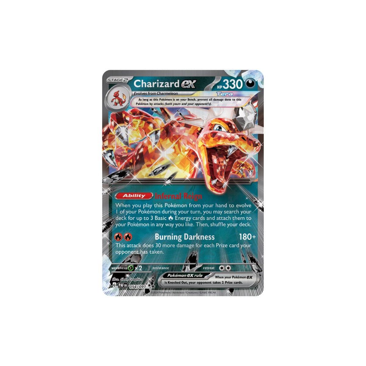 Deze machtige vuurtype Pokémon, geëvolueerd van Charmander via Charmeleon, beschikt over indrukwekkende aanvallen die tegenstanders verzengen in gevecht. Na je overwinning kun je je Charizard ex trots tentoonstellen in de duurzame magnetische beschermer.