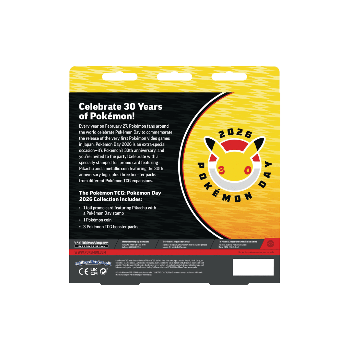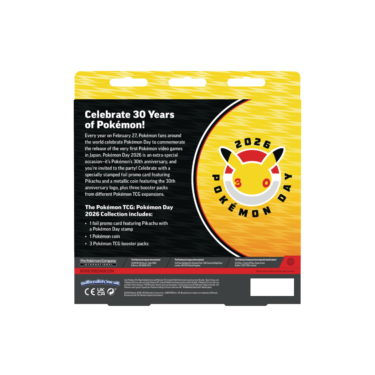 Op 27 februari vieren fans wereldwijd Pokémon Day, de dag waarop de allereerste games in Japan verschenen. In 2026 is dit extra speciaal: het is de 30e verjaardag van de franchise! Met de Pokémon TCG: Pokémon Day 2026 Collection word jij uitgenodigd voor het grootste feest in de geschiedenis van Pokémon.