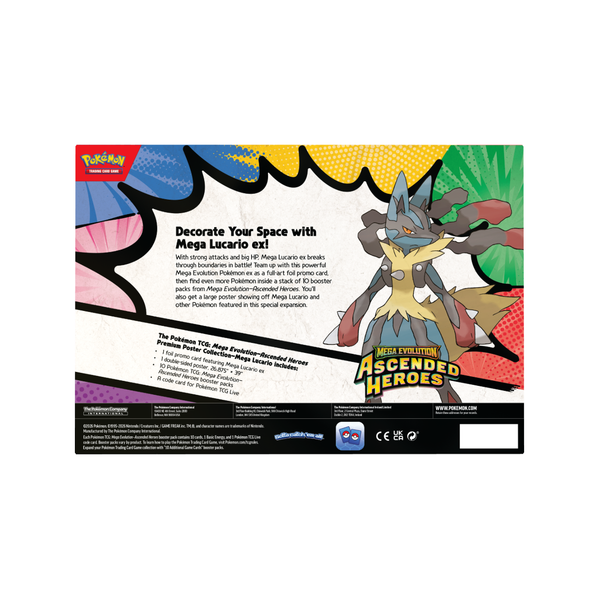 Deze collectie is perfect voor trainers die hun tegenstanders willen overrompelen met snelheid en kracht. Je ontvangt een schitterende full-art foil promokaart van Mega Lucario ex, klaar om direct in je deck te spelen. Daarnaast krijg je een gigantische dubbelzijdige poster om je kamer in stijl aan te kleden. Om je verzameling compleet te maken, bevat deze box maar liefst 10 booster packs uit de Ascended Heroes serie.