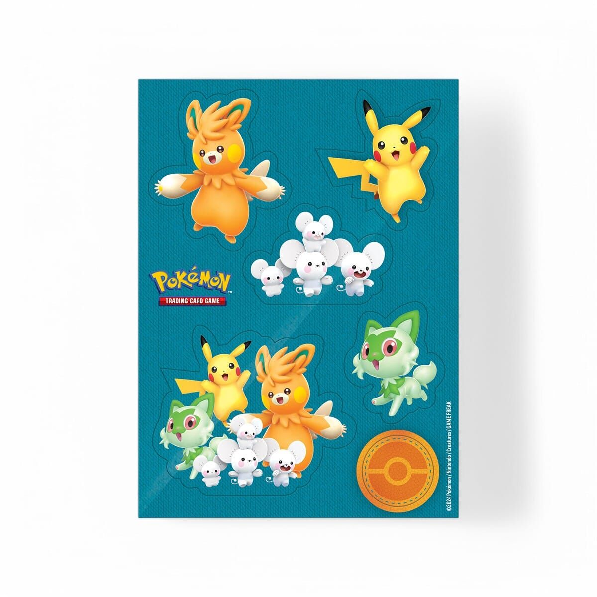 - 7 foil promo kaarten met Pikachu, Sprigatito ex, Pawmi, Pawmo, Pawmot ex, Tandemaus en Maushold ex.
