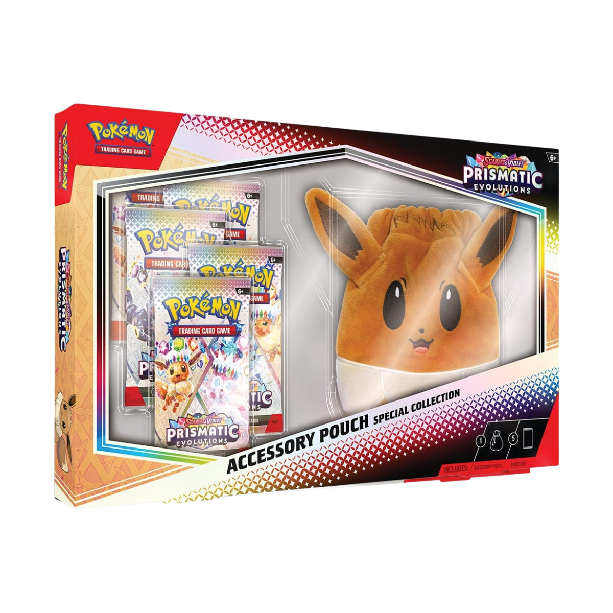 Eevee & Friends stralen met schitterende kleuren in deze Pokémon TCG Scarlet & Violet Prismatic Evolutions Accessory Pouch Special Collection!