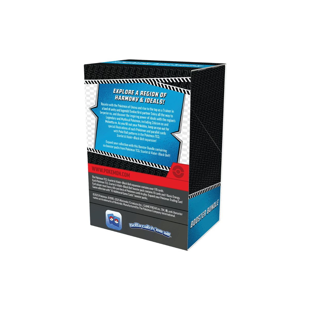 Herenigje met de Pokemon van Unova met deze Black Bolt Booster Bundle! Bevat 6 booster packs vol met meer dan 170 kaarten, waaronder meer dan 65 illustration rare kaarten, meer dan 5 special illustration rare kaarten en meer dan 5 Pokemon ex. Evolue je starter Pokemon Snivy tot zijn finale vorm Serperior ex, en ontdek legendarische Pokemon zoals Zekrom ex en Meloetta ex. Let op de speciale illustraties en parallel kaarten met Poke Ball patronen!