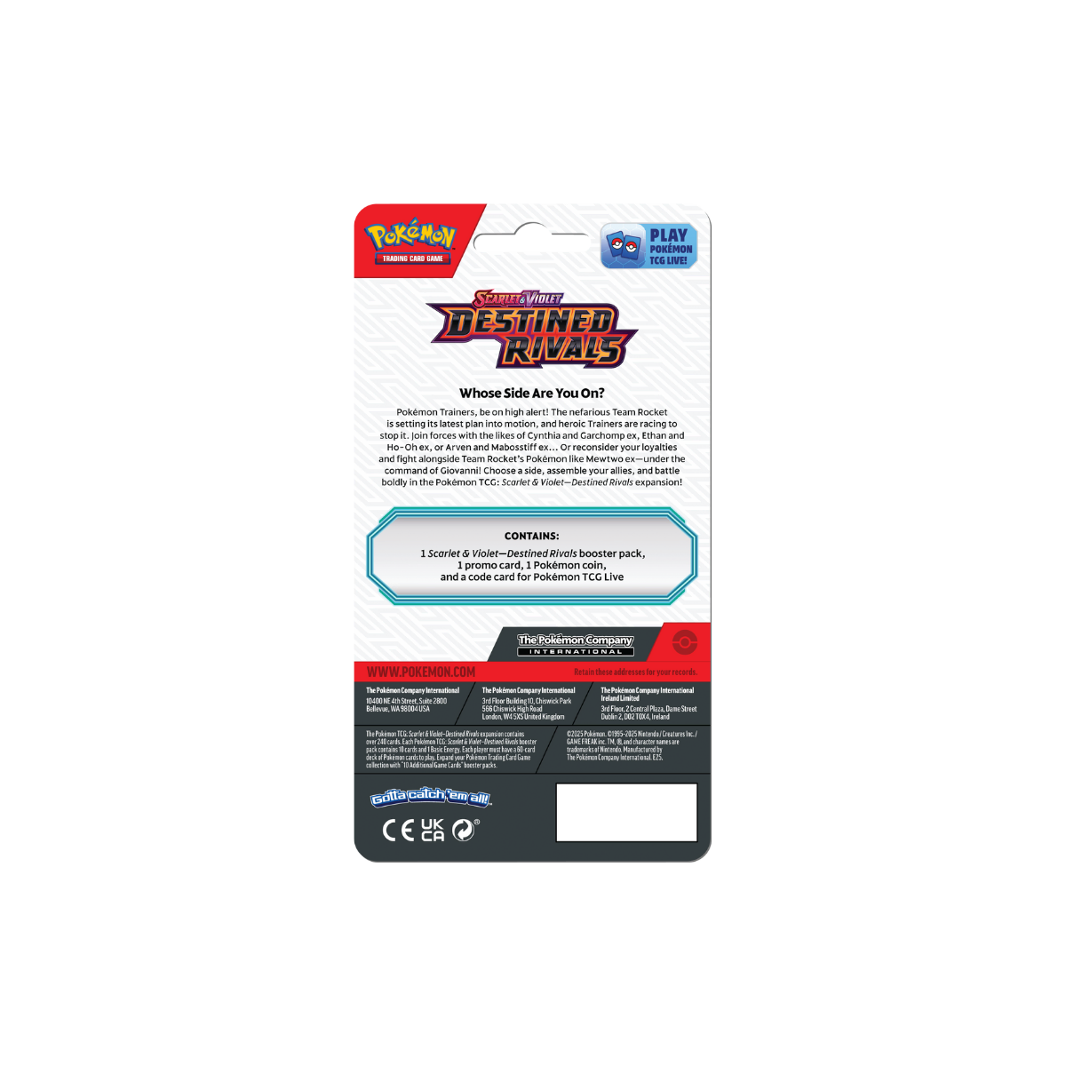 Deze betaalbare checklane blister combineert de spanning van een boosterpack uit de Destined Rivals uitbreiding met een verzamelwaardige promokaart en munt – ideaal voor beginnende verzamelaars of als klein cadeautje voor de Pokémon-liefhebber!