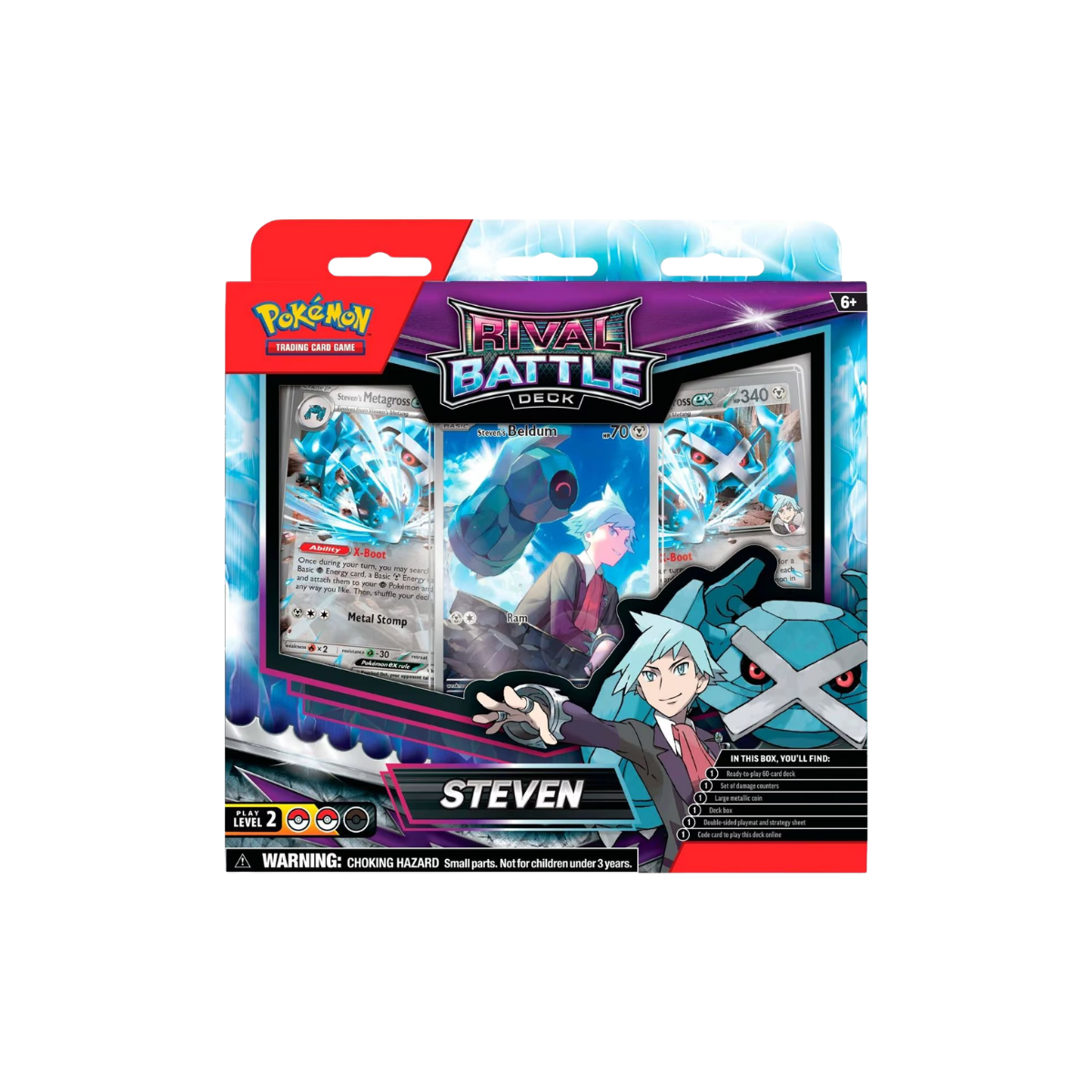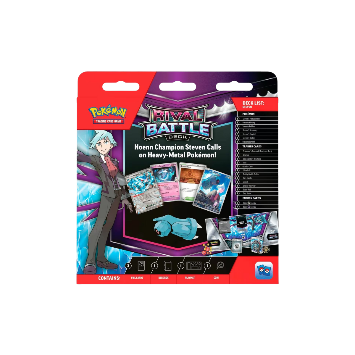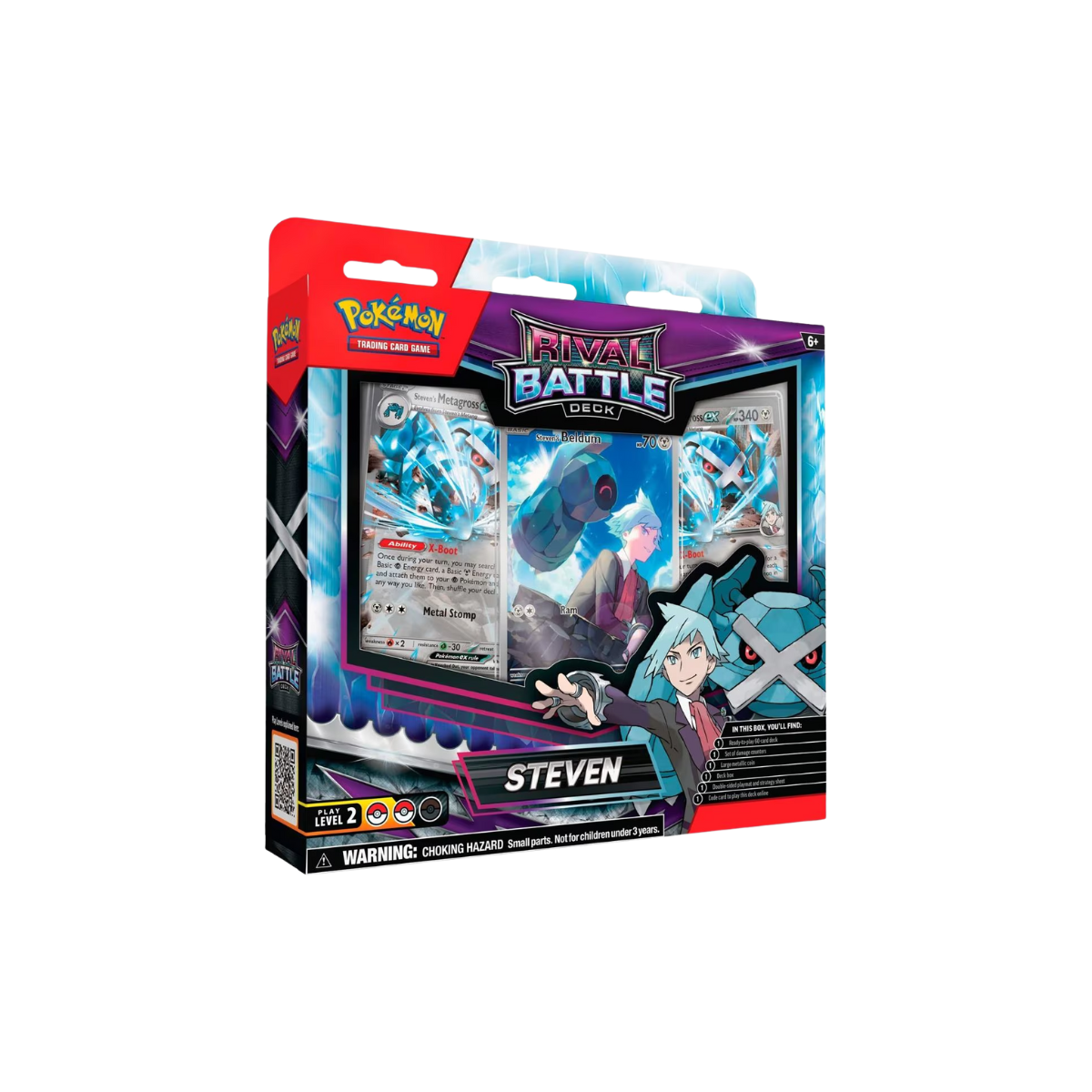 Kies je kant in deze epische Rival Battle! Ga voor Marnie’s stoere punkstijl met Grimmsnarl ex of kies Steven’s strategische precisie met Metagross ex. Beide decks zijn direct speelklaar en perfect voor beginners én ervaren spelers die houden van snelle, competitieve gevechten.