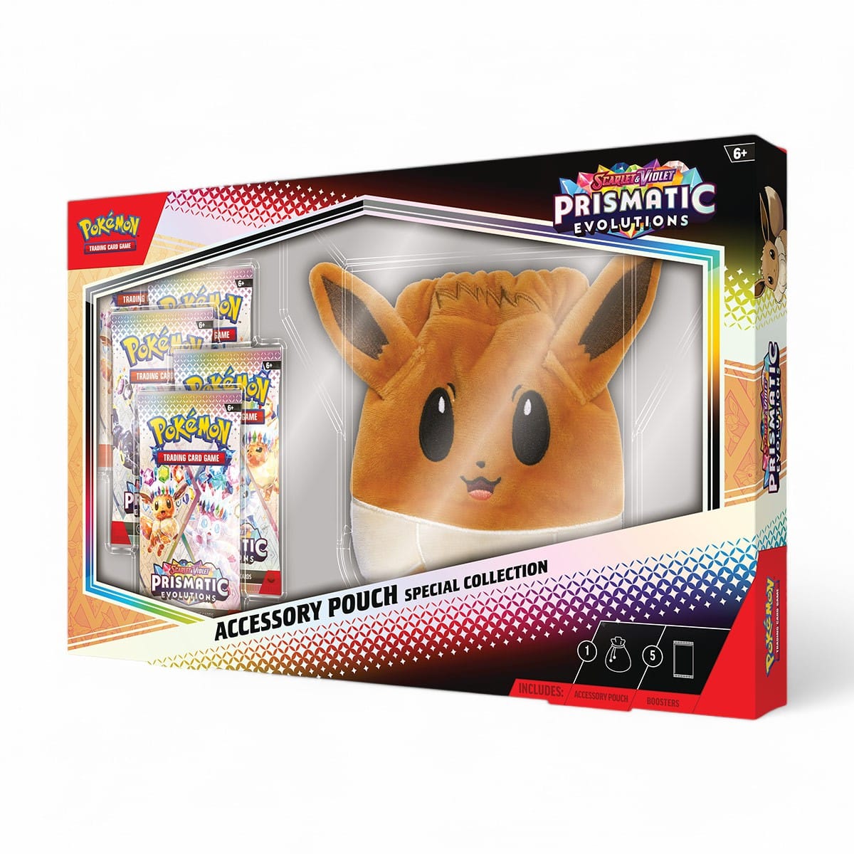 Eevee & Friends stralen met schitterende kleuren in deze Pokémon TCG Scarlet & Violet Prismatic Evolutions Accessory Pouch Special Collection!
