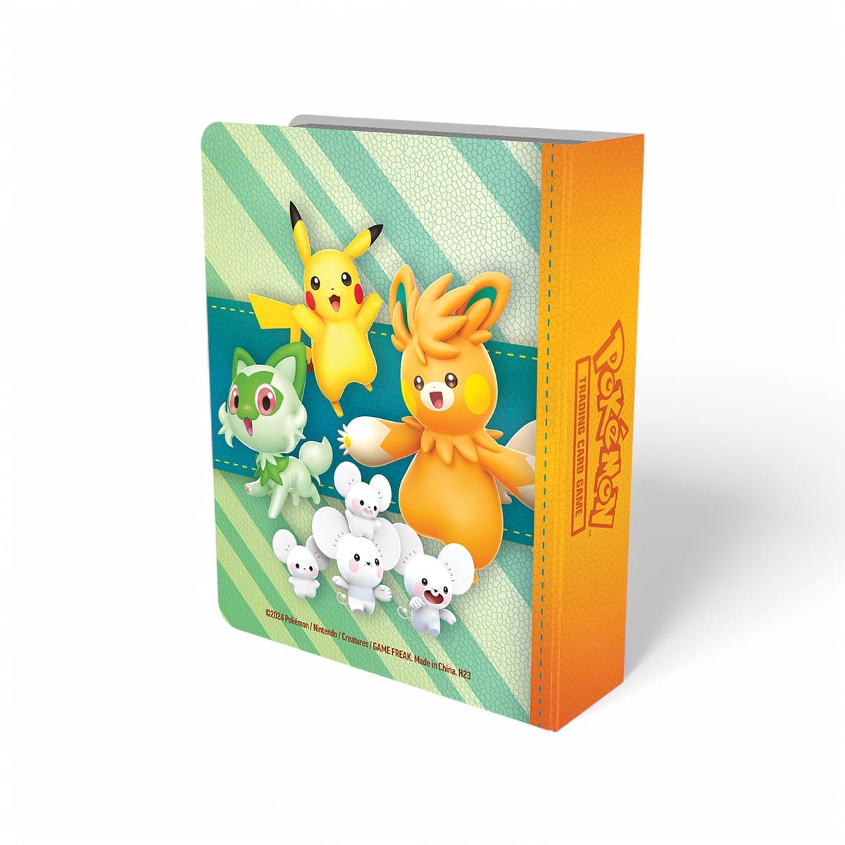 Zo bevat deze doos maar liefst zeven foil promo kaarten van Pikachu, Sprigatito exx, Pawmi, Pawmo, Pawmot ex, Tandemaus en Maushold ex, een mini portfolio om je mooiste kaarten in te bewaren, een stickervel met tech stickers en een zachte speelgoed Pikachu!