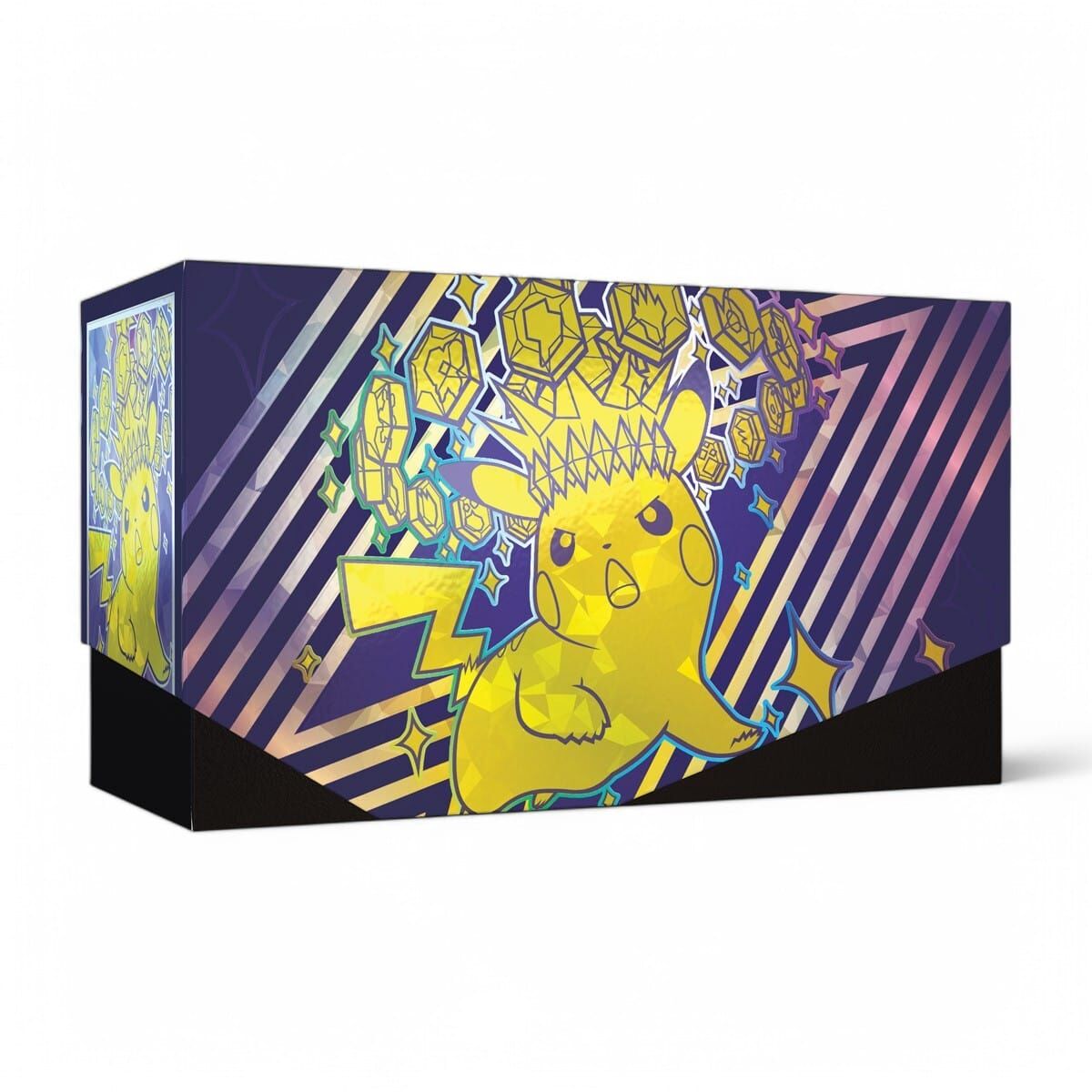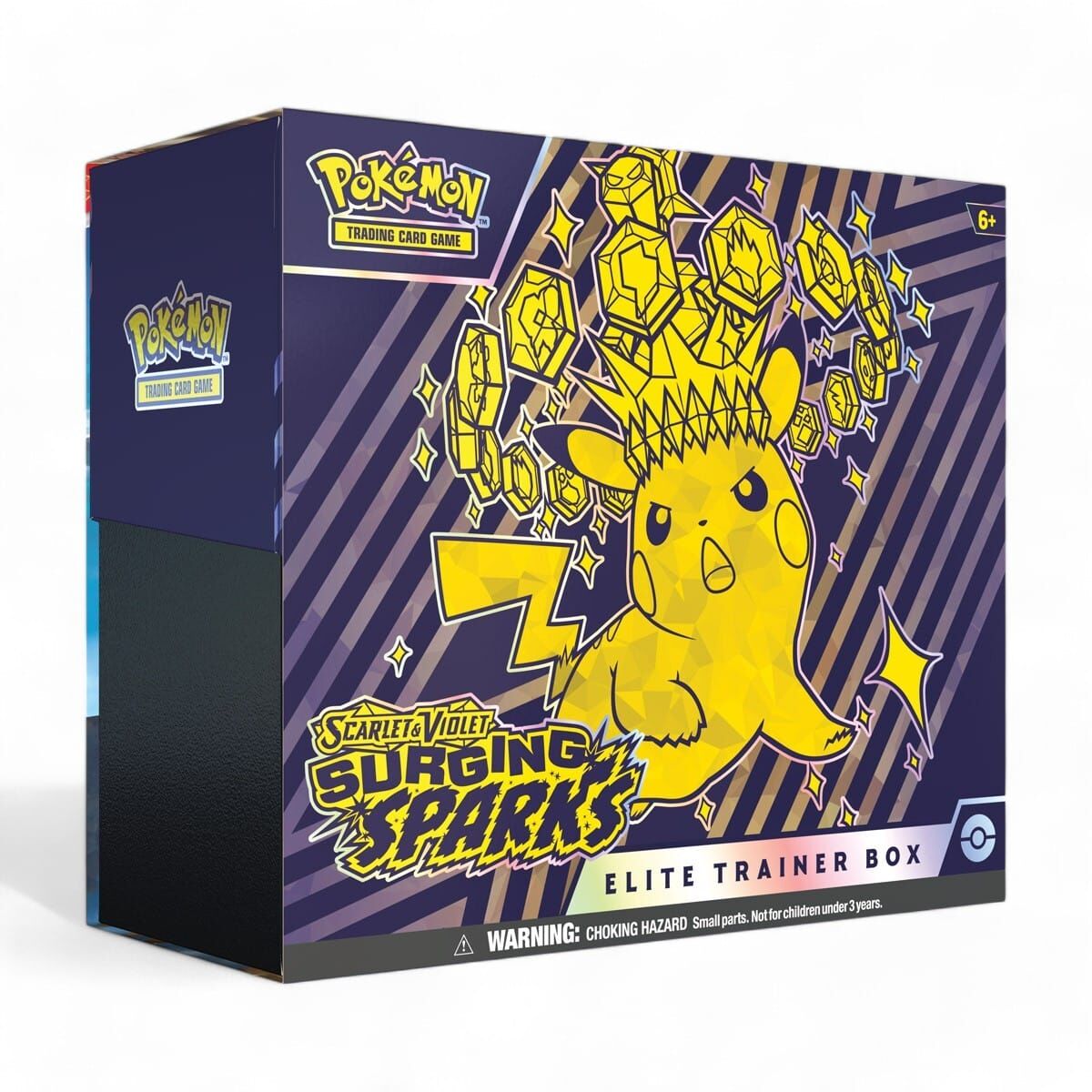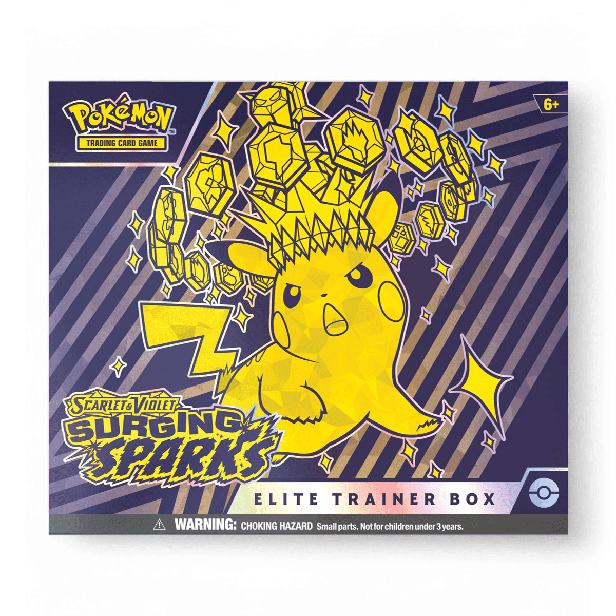 Betreed een wereld vol elektrische spanning en avontuur met de Pokémon Surging Sparks Elite Trainer Box! Laat je meevoeren naar een tropisch paradijs waar de kracht van Pikachu ex als een stralende Stellar Tera Pokémon ex de kust verlicht. Majestueuze Dragon Pokémon zoals de krachtige Alolan Exeggutor gaan de strijd aan, terwijl Archaludon ex, Latias ex en andere nieuwe Pokémon ex samen met innovatieve ACE SPEC-kaarten je deck naar ongekende hoogten stuwen.
