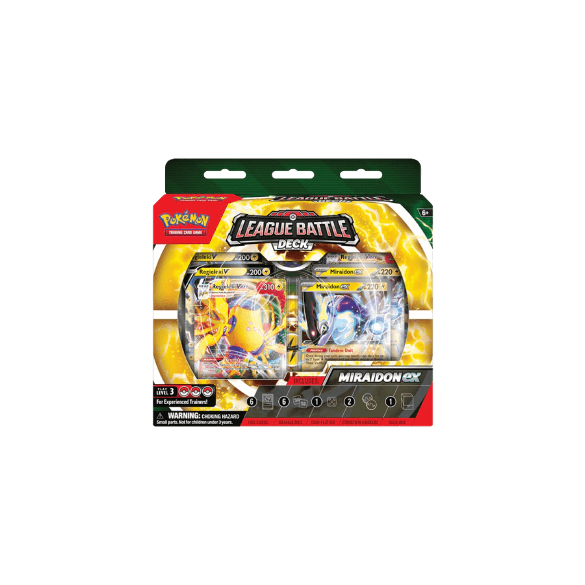 Laad je op met snelheid en precisie dankzij het Miraidon ex League Battle Deck! Dit kant-en-klare 60-kaarten deck is samengesteld voor serieuze Trainers en competitieve Pokémon TCG-spelers. Met krachtige kaarten zoals Miraidon ex en Regieleki VMAX kun je direct meedoen op hoog niveau — zowel thuis aan tafel als online via Pokémon TCG Live.