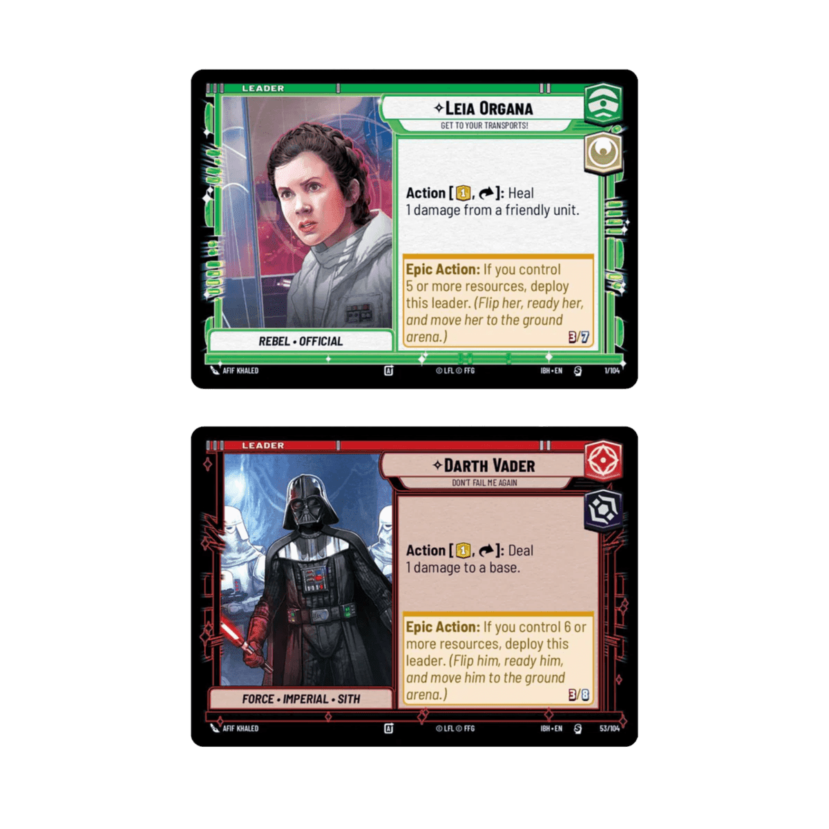 - 2 voorgemaakte decks van 50 kaarten (Leia Organa vs Darth Vader)